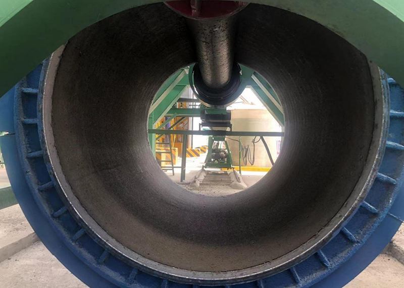 本項目共預制圓管涵4188節(jié),涵身混凝土設計標號C30,采用先預制后安裝的施工方法,所預制的Φ1.5m涵管的管壁厚度為16cm,標準管節(jié)長2m,輔助管節(jié)長0.5m。施工采用干硬性混凝土,使用懸輥機輥壓離心制管法預制管節(jié)。