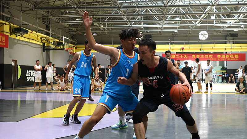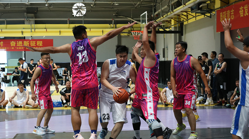 隨著一聲哨響,東、西兩側場地運動員在裁判拋出的籃球面前,屈膝發(fā)力,伸直手臂,“啪”的一聲,完成跳球,比賽正式開始。賽場上球鞋摩擦地面,籃球砸地的聲音此起彼伏,場周吶喊助威的聲音不絕于耳。此時的他們拋下平日里工作時的嚴肅形象,身影矯健、防守周密,拼盡全力奮力廝殺,他們勇敢果斷、活力無限。他們用精湛的球技和堅韌拼搏、誓不言敗的精神,為觀眾們奉獻了許多精彩的瞬間。