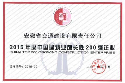 全國建筑業(yè)企業(yè)創(chuàng)新發(fā)展經(jīng)驗(yàn)交流會(huì)在廣西南寧召開,大會(huì)上對(duì)獲得2015年度中國建筑業(yè)成長性200強(qiáng)的企業(yè)進(jìn)行了表彰并頒獎(jiǎng)。安徽省交通建設(shè)股份有限公司(以下簡稱安徽...