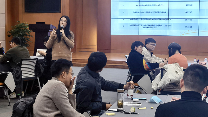 在共創(chuàng)會環(huán)節(jié),大家就“如何快速融入公司”、“你希望的領(lǐng)導風格”、“假如你是管理者,如何帶好團隊”等問題各抒己見并展開激烈討論。這一環(huán)節(jié)旨在促進新員工的成長和融入,讓大家深刻體會團隊、責任、執(zhí)行的意義。