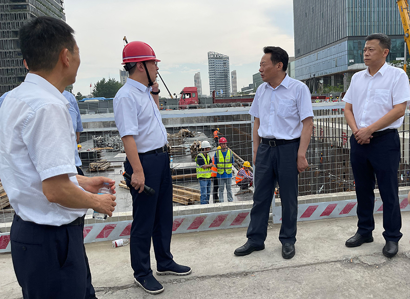 在宿松路下穿繁華大道施工現(xiàn)場,虞愛華聽取了項目概況、施工進(jìn)度等方面的介紹,對2標(biāo)段能夠在188天完成花園大道跨線橋建成通車給予了高度認(rèn)可。虞愛華對大建設(shè)工作者們在炎熱天氣下的辛勤付出表示真摯的慰問和感謝,并叮囑一線建設(shè)工人要注意勞逸結(jié)合和防暑降溫。他強(qiáng)調(diào),在統(tǒng)籌發(fā)展的同時,要高度重視安全管理,既要守住“看不見”的防疫安全,也要守住“看得見”的生產(chǎn)安全,堅決防范各類重大事故的發(fā)生。